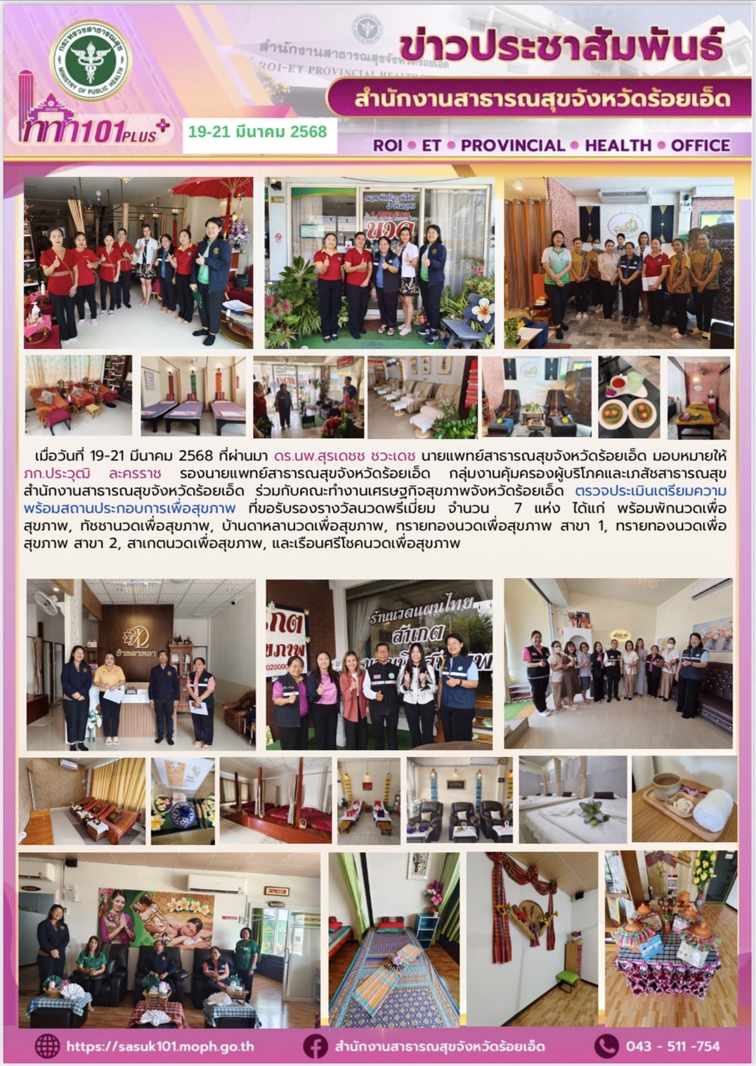 การตรวจประเมินเตรียมความพร้อมสถานประกอบการเพื่อสุขภาพ (ร้านนวดพรีเมี่ยม) ประจำปี 2568