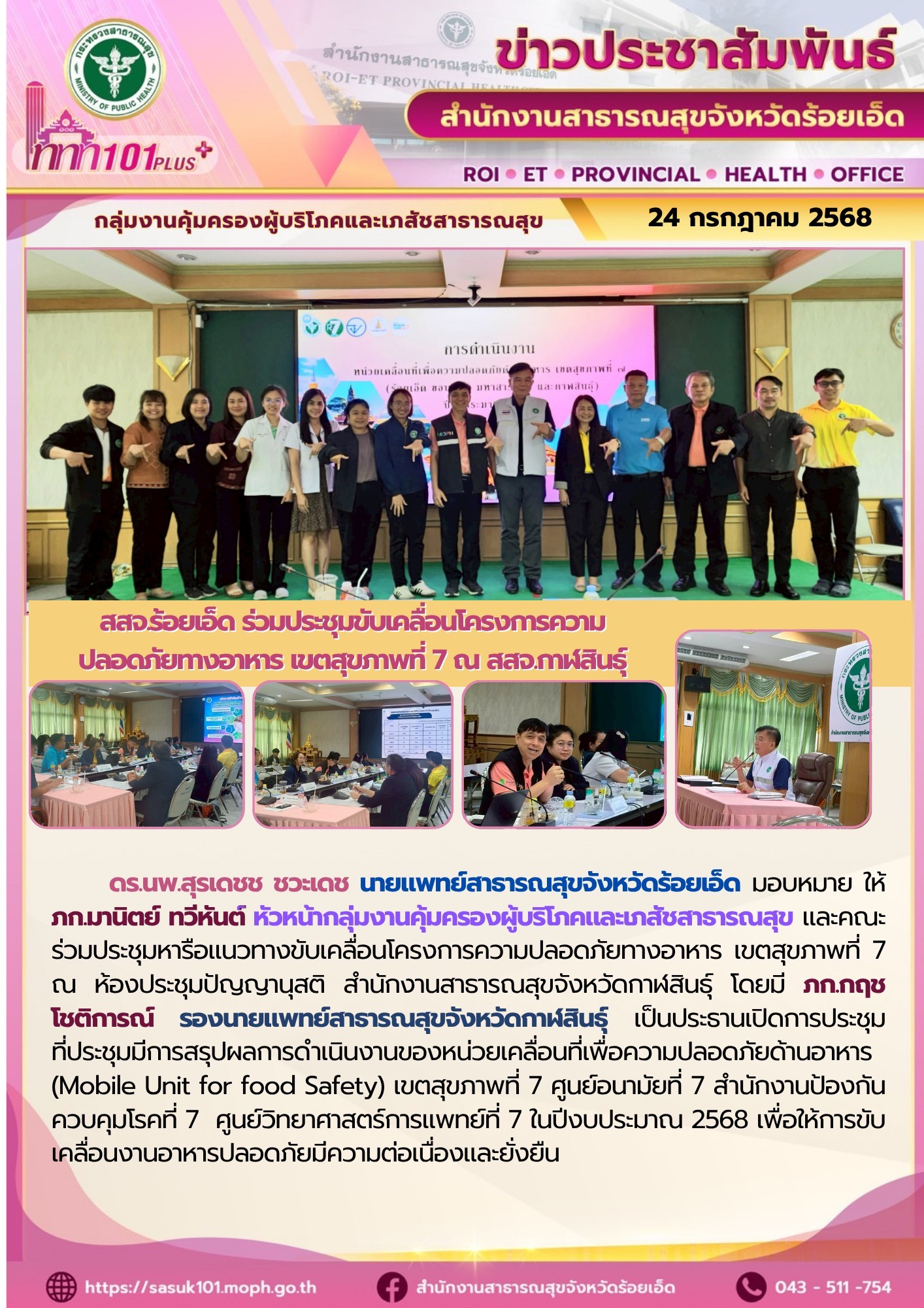 ประชุมขับเคลื่อนโครงการความปลอดภัยทางอาหาร เขตสุขภาพที่ 7 ณ สสจ.กาฬสินธุ์