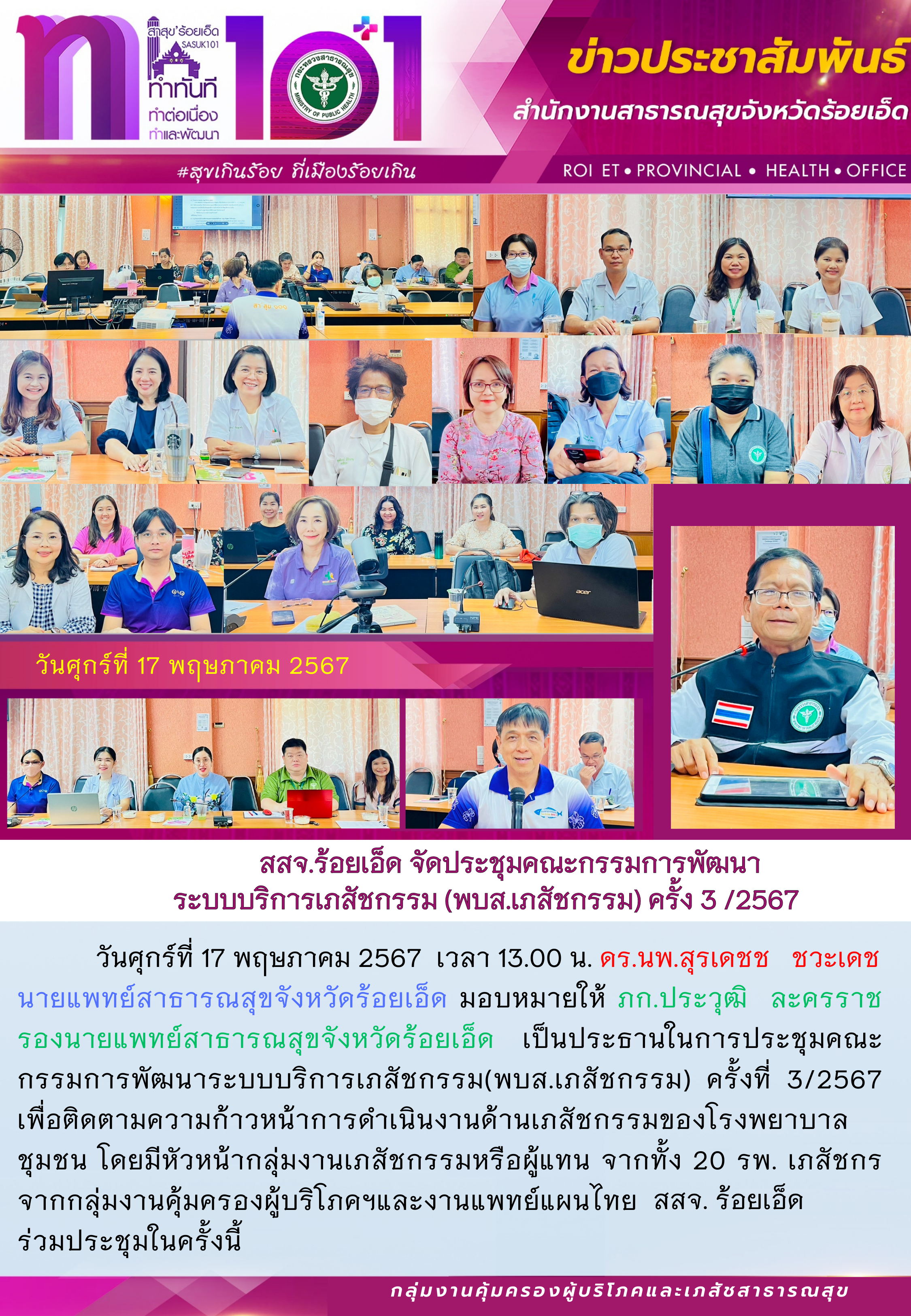 ประชุมคณะกรรมการพัฒนาระบบบริการเภสัชกรรม (พบส.เภสัชกรรม) ครั้ง 3 /2567