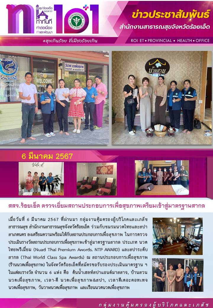 สสจร้อยเอ็ด ตรวจเยี่ยมสถานประกอบการเพื่อสุขภาพเตรียมเข้าสู่มาตรฐานสากล