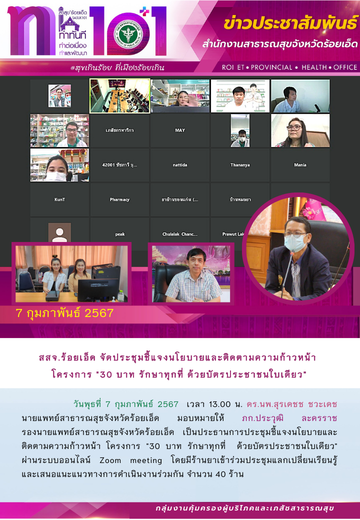 สสจ.ร้อยเอ็ด จัดประชุมชี้แจงนโยบายและติดตามความก้าวหน้า โครงการ “30 บาท รักษาทุกที่ ด้วยบัตรประชาชนใบเดียว”