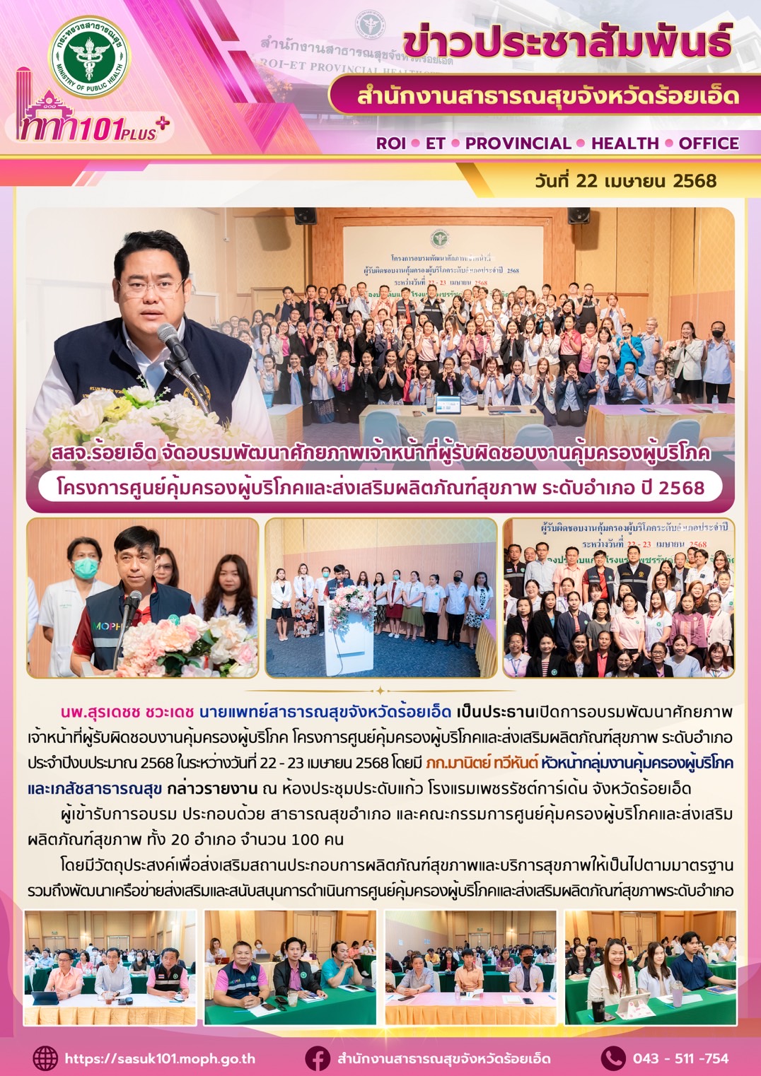 อบรมพัฒนาศักยภาพเจ้าหน้าที่ผู้รับผิดชอบงานคุ้มครองผู้บริโภค โครงการศูนย์คุ้มครองผู้บริโภคและส่งเสริมผลิตภัณฑ์สุขภาพ ระดับอําเภอ ปี 2568