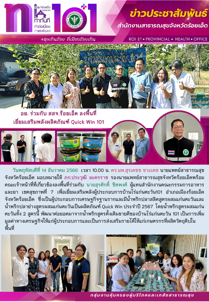 อย. ร่วมกับ สสจ.ร้อยเอ็ด ลงพื้นที่เยี่ยมเสริมพลังผลิตภัณฑ์ Quick Win 101