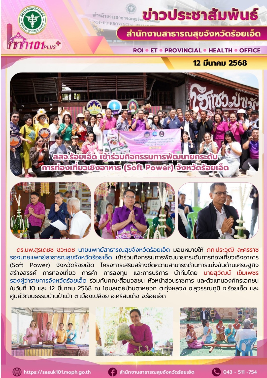 เข้าร่วมกิจกรรมการพัฒนายกระดับการท่องเที่ยวเชิงอาหาร (Soft Power) จังหวัดร้อยเอ็ด